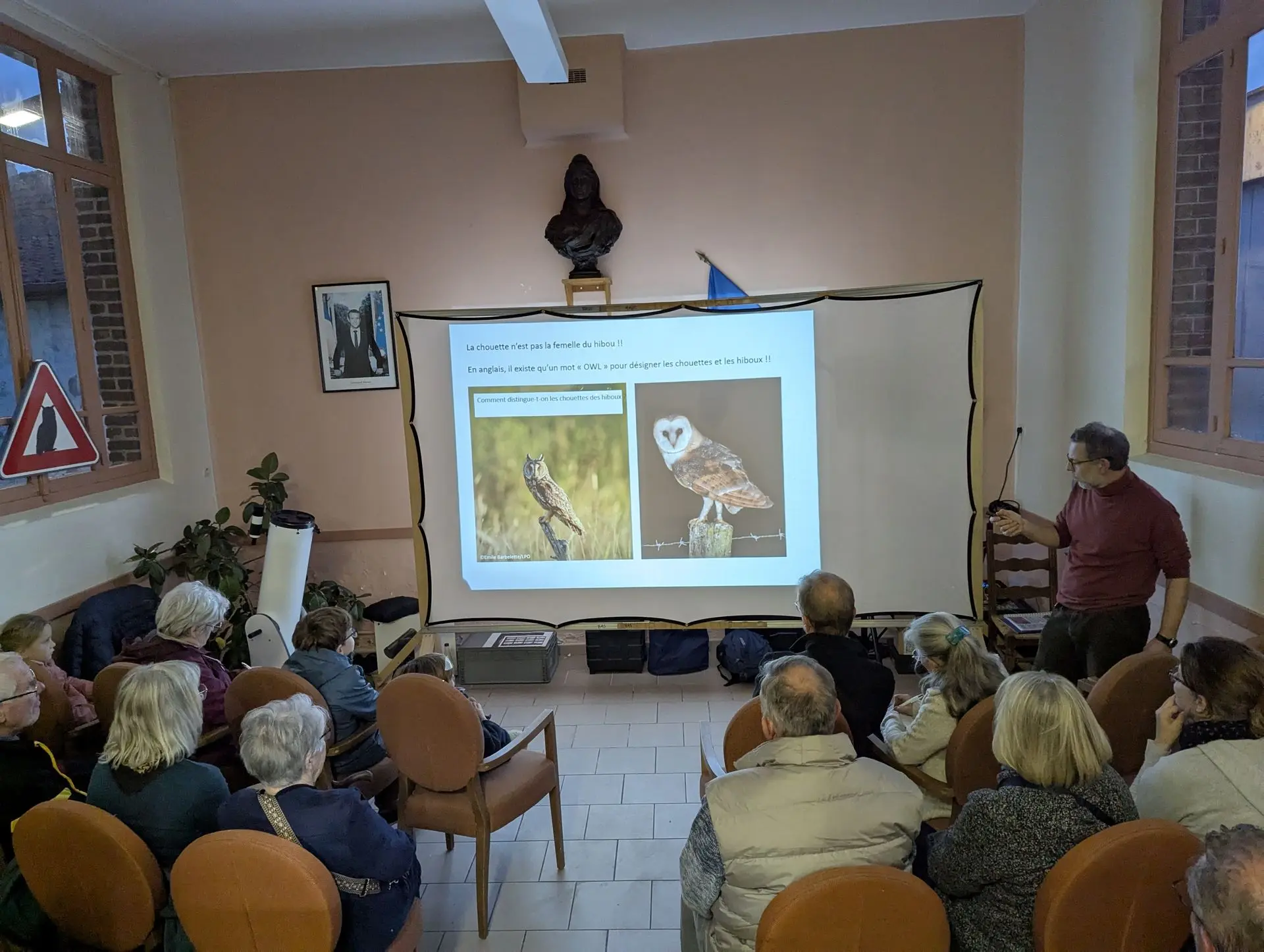 - À 19h, Cambrésis Nature a présenté une intervention passionnante sur les rapaces nocturnes, mettant en lumière leur rôle écologique et les menaces qui pèsent sur eux.